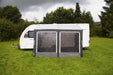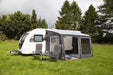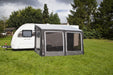 Twin 4mm & 6mm piping allows versatile attachment across different caravan awning rails, while practical features such as zip-back side and front doors, tinted PVC windows with toggle-up blinds, and top rear corner ventilation offer comfort, privacy and airflow throughout your stay. The rear pad system supports a snug fit against your caravan, with optional pole and suction fixings for enhanced sealing.