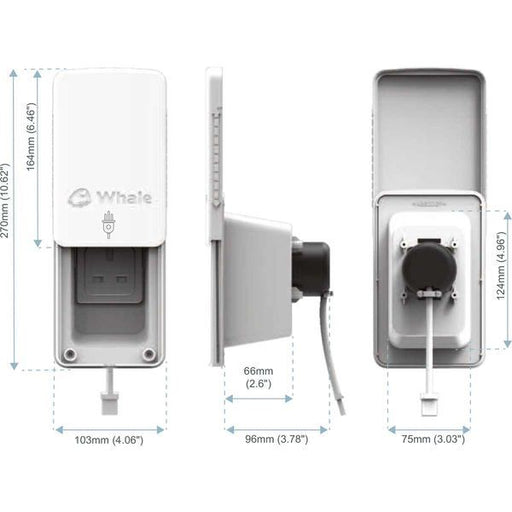 Whale mains electric in socket allowing the user to safely hook-up 230V/16amp mains power to a caravan, motorhome or camper van while onsite. Speci...