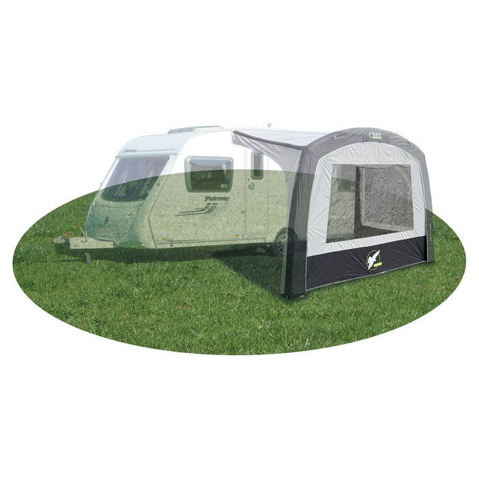 Simply click into position in seconds Features 1 large panoramic window Internal blind for addd privacy when required Gives additional protection from the weather when used with your Quest Falcon Air Canopy.
