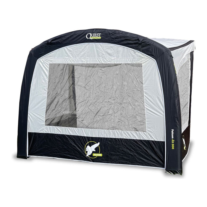 Shop the Full CollectionQuest Falcon air 300 canopy front wall This is the optional front wall for the excellent Quest Falcon Air 300 canopy. It uses the same Quest Tec150 fabric as the canopy and has one large panoramic window with an internal blind for added privacy when required. It simply clicks into position when in use, taking seconds to put up or take down. It gives you added protection from the weather when used with your Quest Falcon air canopy. Quest Tec150 Fabric This is a modern, lightweight fabric. It has a high performance coating giving it a very high waterproof rating, whilst helping to keep the weight down and the pack size smaller. The fabric is naturally water repellent, which means it quick to dry, making it easier to dry it when you are back at home if it is put away wet. It also means that it is easy to clean as the majority of dirt is just washed off with water as the dirt is not soaked in like it can on some heavier fabrics. The technical specification of the fabric is 150D and a hydrostatic head (HH) of 4,000 mm. The advanced coating on this lightweight fabric also means that it is protected against the harmful suns rays and helps extend its lifespan. This same coating also gives it a U.P.f rating of 50+, which is the highest possible, giving you great protection from the sun as well. Very Small Pack Size The lightweight fabric also allows it to be rolled and folded to a very small size. This option means that they pack down to a very small pack size.